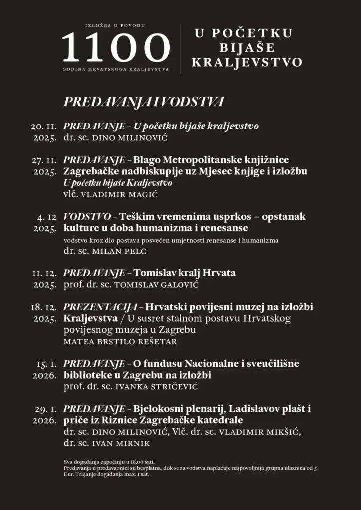 Predavanja i vodstva uz izložbu “U početku bijaše Kraljevstvo – 1100 godina Hrvatskoga kraljevstva”